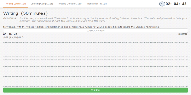 2、確保找一個時間段充足的時間答題,中途不能退出,需一氣呵成,一旦開始答題必須直到提交才算??冀Y(jié)束。