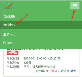 2、登錄成功后點(diǎn)擊“考試中心”,點(diǎn)擊對(duì)應(yīng)的場(chǎng)次“去報(bào)名”,填寫好自己的個(gè)人信息,點(diǎn)擊確定后即可報(bào)名成功,要保證個(gè)人信息無誤,避免影響成績(jī)。(班級(jí)填寫教學(xué)班,如B213)