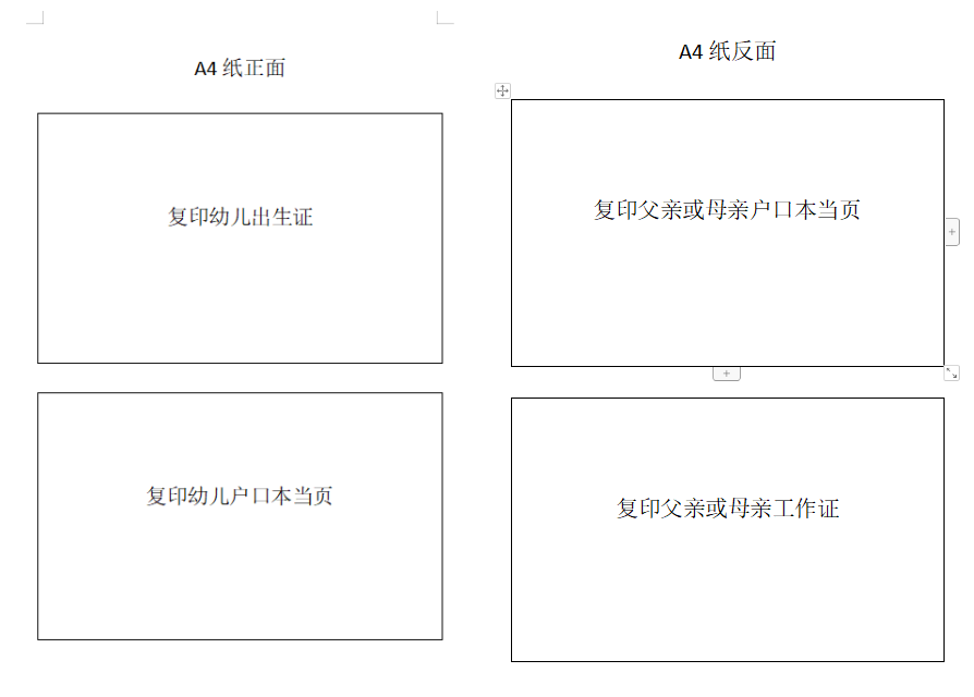 辦理入園手續(xù)時家長需攜幼兒出生證明原件及復(fù)印件、幼兒戶口本當(dāng)頁復(fù)印件、父親或母親戶口本當(dāng)頁復(fù)印件、父親或母親本人工作證復(fù)印件(以上資料請?zhí)崆笆褂肁4紙依次進(jìn)行雙面復(fù)印,復(fù)印模板附后)?,F(xiàn)場查看工作證原件,請攜帶。