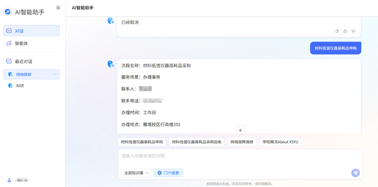 AI小油智能助手:24小時(shí)智慧服務(wù)新標(biāo)配。融合服務(wù)門戶同步搭載AI小油智能問(wèn)答系統(tǒng),聚焦獎(jiǎng)助政策、辦事流程、校園網(wǎng)絡(luò)等高頻咨詢場(chǎng)景,提供7×24小時(shí)即時(shí)響應(yīng)服務(wù)。