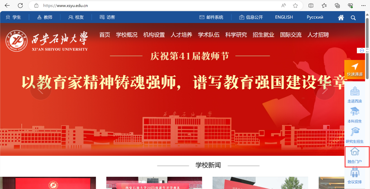融合服務(wù)門戶打開方式:PC端:學(xué)校首頁(yè)-右邊欄-快速通道-融合門戶。