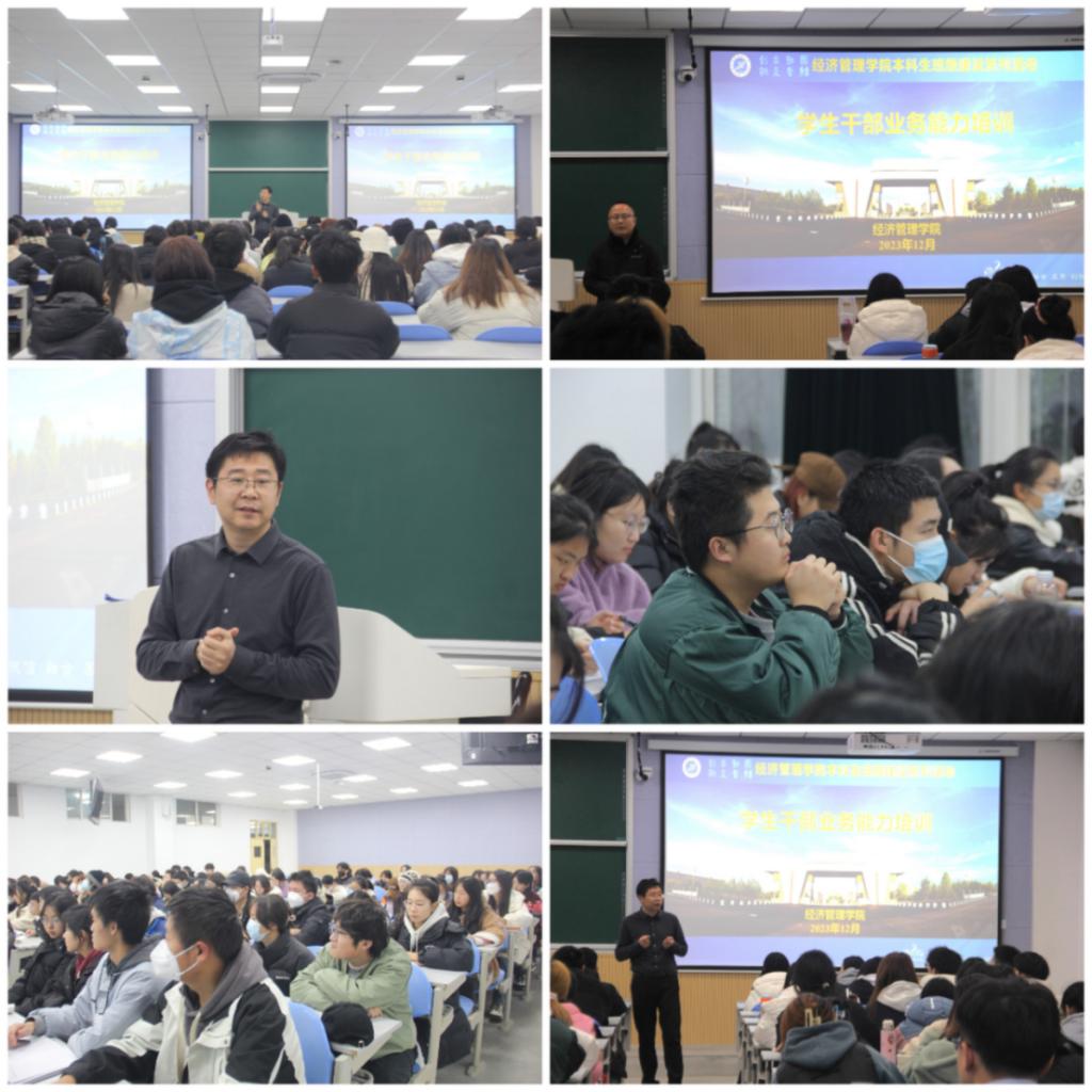 為進一步增強本科生班級建設(shè)工作成效,根據(jù)經(jīng)濟管理學院2023—2024學年第一學期本科生班級建設(shè)系列活動安排,12月14日,經(jīng)濟管理學院在鄠邑校區(qū)博覽樓108智慧大講堂開展學生干部業(yè)務(wù)能力培訓。本次培訓由學生工作部(處)部(處)長、就業(yè)指導中心主任王亮主講,學院黨委副書記王剛主持培訓會,各年級、各班級“兩委”主要學生干部,學生黨建工作辦公室副部長級以上干部,團學副部長級以上干部參加。