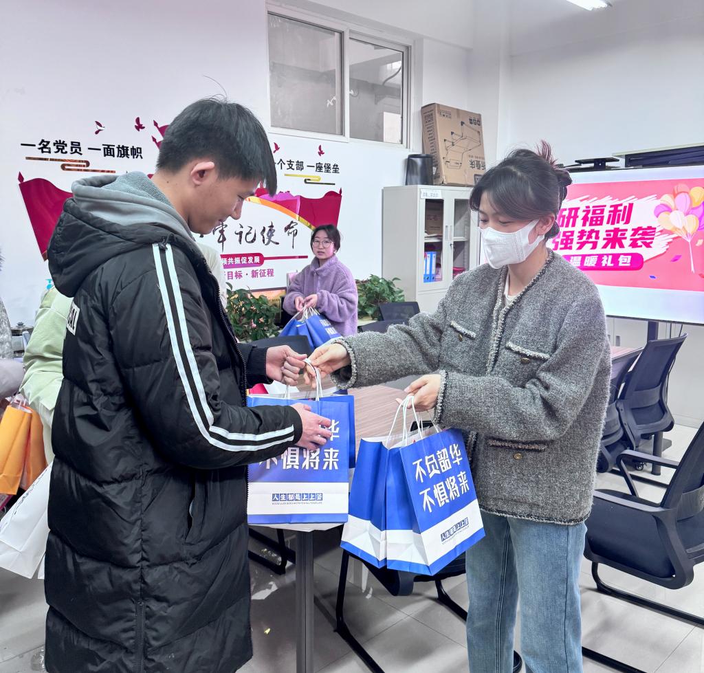 會后,學(xué)院為每位考研學(xué)生精心準備了考研溫暖大禮包。包括需要萬事備的考研文具袋、不懼寒冬的暖手寶、提神醒腦的咖啡、透明玻璃杯提醒同學(xué)們多喝水,臨近考試注意身體,以飽滿的精神狀態(tài)迎接考試,每位同學(xué)的禮品袋上也是美好的寓意,祝愿大家未來可期、前程似錦、好運將至,還有學(xué)院為大家準備的金榜題名賀卡,為同學(xué)們一路以來的堅持點贊,并祝福每一位趕路人都能一戰(zhàn)成,暖冬心事成,幸運伴你行!暖心的禮包讓考研學(xué)子倍感溫暖,倍加振奮,同學(xué)們紛紛表示會更加堅定考研必勝的信心,會以更加努力學(xué)習(xí)的實際行動回報學(xué)院的關(guān)懷,迎接未來的挑戰(zhàn)。