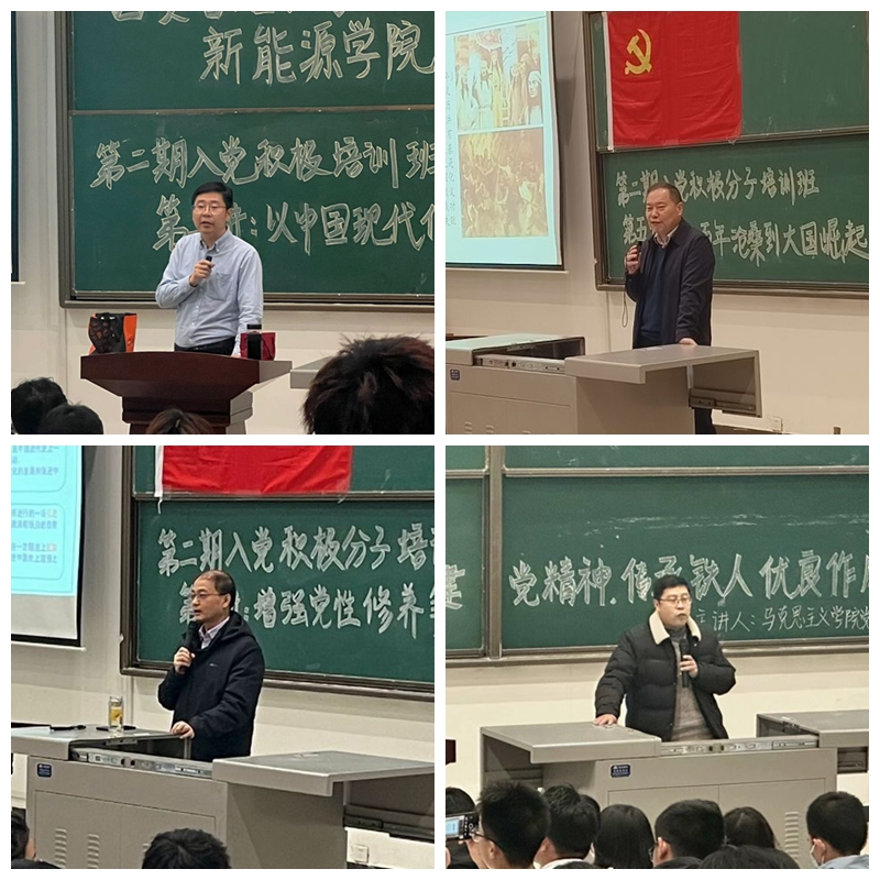 常學常新,做黨的創(chuàng)新理論的堅定信仰者。培訓期間,來自我校各部門的老師先后為同學們進行了一場場深入淺出、內(nèi)容豐富、思想深刻的專題黨課,我校黨委學工部(處)長王亮為大家講授“中國式現(xiàn)代化推進中華民族偉大復興”;校團委書記何國強為大家講授“鐵人精神永放光芒”;校紀委副書記齊仲鋒為大家講授“從百年滄桑到大國崛起”;化學化工學院黨委副書記祁帆為大家講授“不忘初心、牢記使命——學習中國共產(chǎn)黨百年輝煌史”;研究生工作部部長李強為大家講授“增強黨性修養(yǎng) 爭取早日加入黨組織”;馬克思主義學院黨總支書記張偉為大家講授“弘揚偉大建黨精神 傳承鐵人優(yōu)良作風”;新能源學院團委書記馬武軍為大家講授“嚴格黨員發(fā)展規(guī)程,全面提高黨員發(fā)展質(zhì)量”;新能源學院2023級團總支書記盧筱佳為大家講授“如何端正入黨動機”等課程。課程內(nèi)容涵蓋黨員發(fā)展條件和入黨程序、黨的性質(zhì)、宗旨、指導思想、黨史黨情、鐵人精神解讀、黨的二十大精神及習近平新時代中國特色社會主義思想、黨的紀律建設(shè)和作風建設(shè)等。
