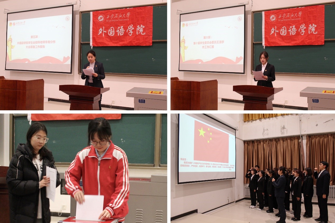 周宇宣讀了校團(tuán)委、校學(xué)生會(huì)《關(guān)于同意召開西安石油大學(xué)外國(guó)語(yǔ)學(xué)院第十一次團(tuán)委屆內(nèi)調(diào)整大會(huì)暨學(xué)生代表大會(huì)的批復(fù)》。聽取和審議了李青分作的《外國(guó)語(yǔ)學(xué)院第十一次團(tuán)委屆內(nèi)調(diào)整大會(huì)暨學(xué)生代表大會(huì)籌備工作報(bào)告》和第十屆學(xué)生委員會(huì)代表王清宇作的《忠誠(chéng)擔(dān)當(dāng)守初心,履職盡責(zé)作表率,建設(shè)聽黨話、肯奮斗、強(qiáng)引領(lǐng)的學(xué)生會(huì)組織》報(bào)告。選舉產(chǎn)生了新一屆學(xué)院團(tuán)委委員和學(xué)生委員會(huì)委員,并進(jìn)行宣誓。