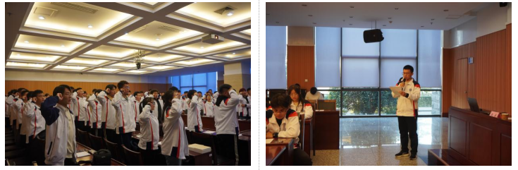 主持人皇甫文清同學帶領學員進行了莊嚴宣誓。學員代表邢許建同學作了發(fā)言。