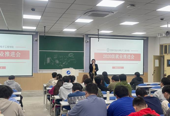 為全面推進落實2024屆畢業(yè)生就業(yè)工作,引導畢業(yè)生樹立正確的就業(yè)觀念,提高就業(yè)積極性和主動性。11月2日下午,電子工程學院在西安石油大學鄠邑校區(qū)博覽樓108教室召開2020級就業(yè)推進會。電子工程學院黨委副書記畢軼慧、學工辦主任錢宇航老師、就業(yè)指導中心專員馬丁老師、往屆畢業(yè)生輔導員張欣樂老師及電子工程學院2020級本科所有計劃就業(yè)學生參加此次會議,會議由2020級輔導員帕麗達·托乎提老師主持。
