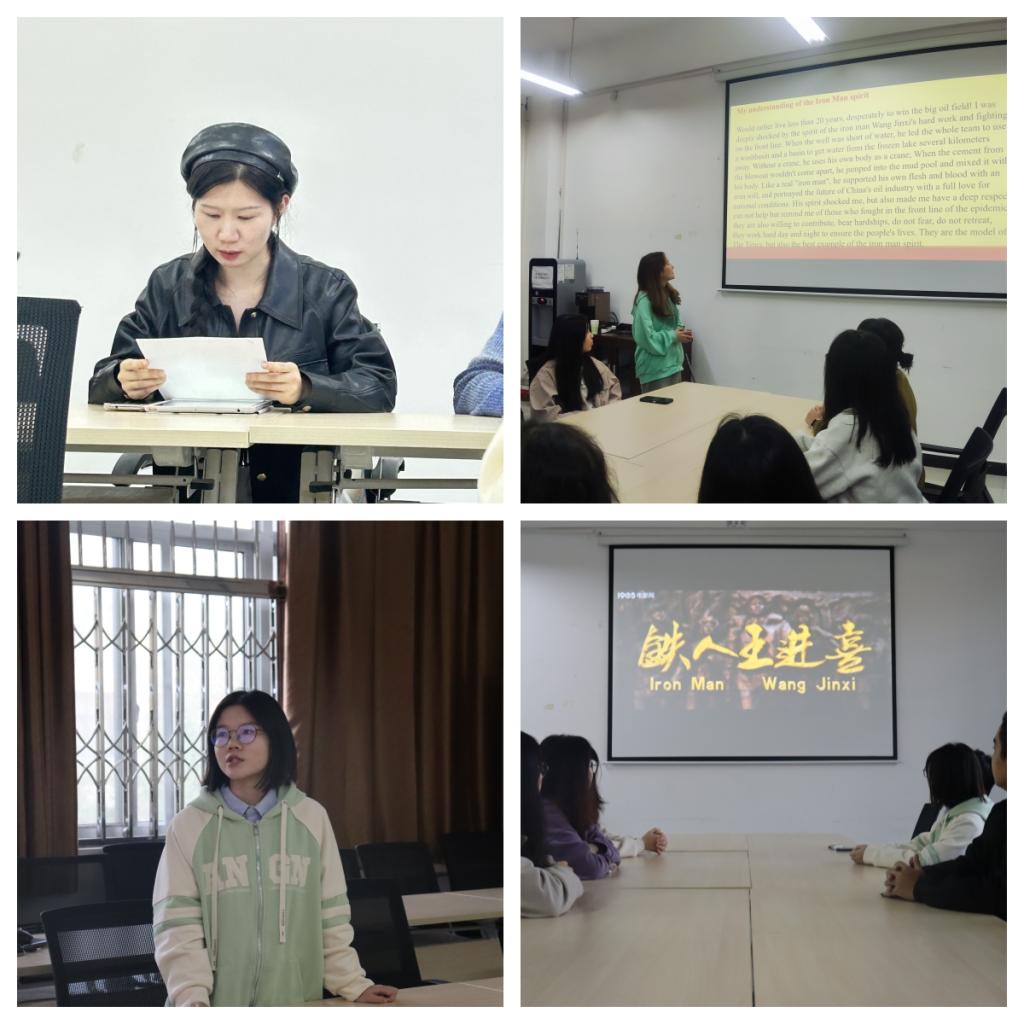 重溫鐵人事跡,賡續(xù)紅色基因。各學(xué)生黨支部以“講好鐵人故事,傳承鐵人精神”為主題,開展“重溫鐵人精神”微黨課、雙語學(xué)習(xí)“鐵人精神”、觀看電影《鐵人王進(jìn)喜》和央視紀(jì)錄片《閃亮的坐標(biāo) 勞模王進(jìn)喜》等活動,將理論學(xué)習(xí)與專業(yè)學(xué)習(xí)融合在一起,并結(jié)合我校校友劉天爵與鐵人的情緣,以及“七一勛章”獲得者、全國脫貧攻堅(jiān)楷模黃文秀等先進(jìn)人物事跡,帶領(lǐng)同學(xué)們深刻感受鐵人王進(jìn)喜“寧肯少活二十年,拼命也要拿下大油田”的錚錚誓言,深刻領(lǐng)悟鐵人精神的內(nèi)涵和時(shí)代回響。在主題黨日活動過程中,各黨支部學(xué)生黨員代表分享學(xué)習(xí)鐵人精神感悟、開展主題演講,追憶鐵人王進(jìn)喜短暫而又光輝的一生。引領(lǐng)同學(xué)們,牢記習(xí)近平總書記諄諄教導(dǎo),傳承鐵人精神,踐行學(xué)校鐵人精神育人理念,立志做有理想、敢擔(dān)當(dāng)、能吃苦、肯奮斗的新時(shí)代好青年。