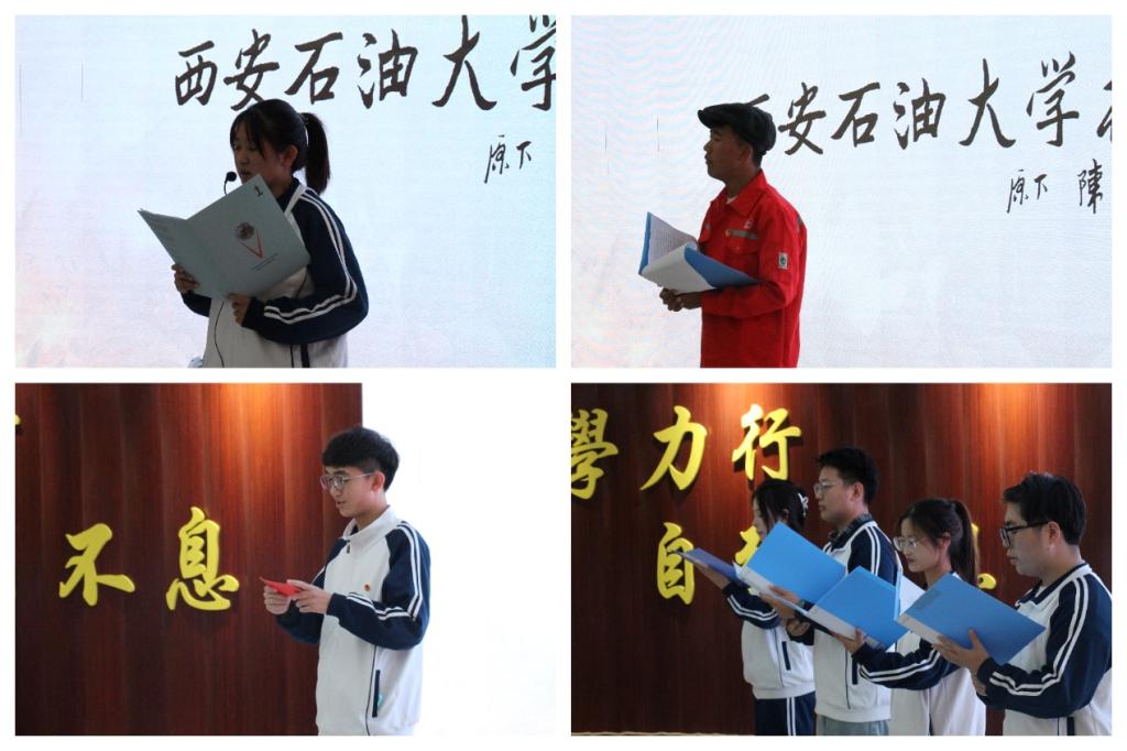 溫家怡同學帶來了一堂生動的主題微團課,她從自己的學習和實踐經驗出發(fā),分享了自己關于鐵人精神內涵和時代價值的認識;索朗多杰同學身著石油工人工作服,以“爭做新時代的鐵人”為題帶來一場精彩演講,演繹王進喜同志的生前故事,分享了自己對鐵人精神的理解和感悟;李嘉豪、張娜等四位同學共同帶來朗誦《鐵人精神頌》,深情的語言、飽滿的熱情使同學們深受感染。