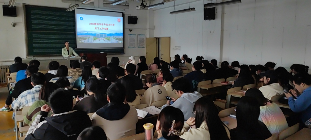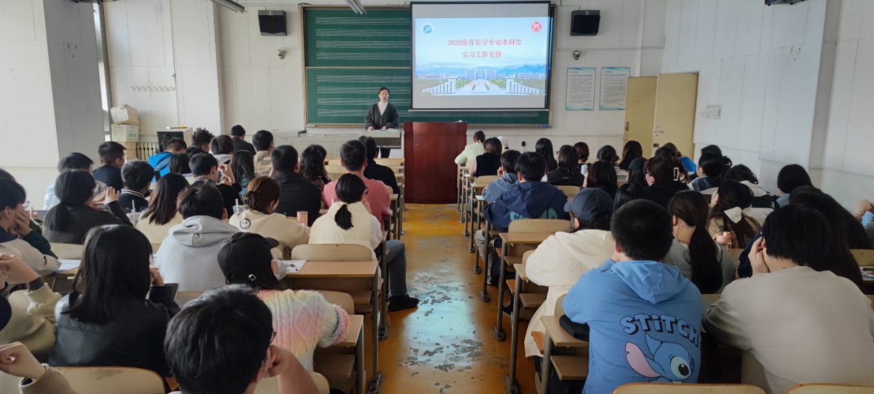 最后,由張帆副主任對此次專業(yè)實習做了動員講話,她強調(diào)了專業(yè)實習是音樂學專業(yè)人才培養(yǎng)內(nèi)容中的重要教學環(huán)節(jié),并向?qū)W生闡釋了專業(yè)實習的重要意義、需要完成的任務、要達到的要求以及實習過程中的相關規(guī)定和紀律要求。結合我系近年來開展實習實踐的具體情況,鼓勵同學們積極投身到專業(yè)實習工作中去,充分發(fā)揮自身特長,結合專業(yè)特色,將理論與實際相聯(lián)系,在實踐中學真知、悟真諦,加強磨練、增長本領。重點強調(diào)要求每位實習生要確保個人人身安全、財物安全、交通安全等穩(wěn)定安全問題。最后還結合2024年本科教育教學審核評估工作,向大家強調(diào)了實習的重要性、規(guī)范性和目標性,實習是本科生重要的教學實踐環(huán)節(jié),所有人必須高度重視,按照要求高質(zhì)量的完成實習工作,為今后走上工作崗位積累經(jīng)驗。