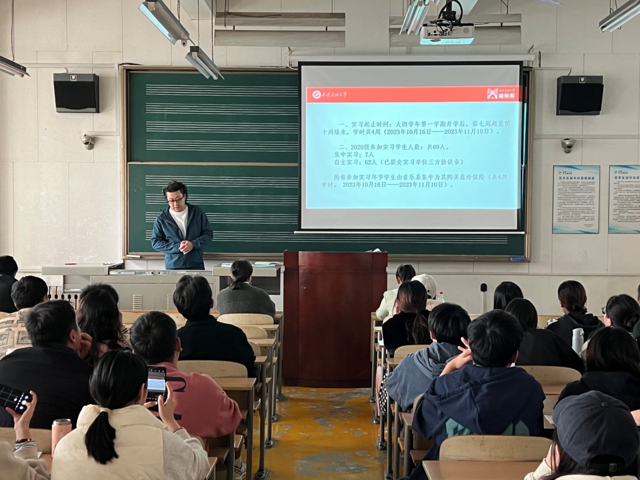 10月9日上午,音樂系2020級學生實習動員會在雁塔校區(qū)東方石油樓1511教室召開。音樂系副主任張帆、學生科科長兼畢業(yè)班輔導員白雨可、實習指導教師劉璽參加會議。
