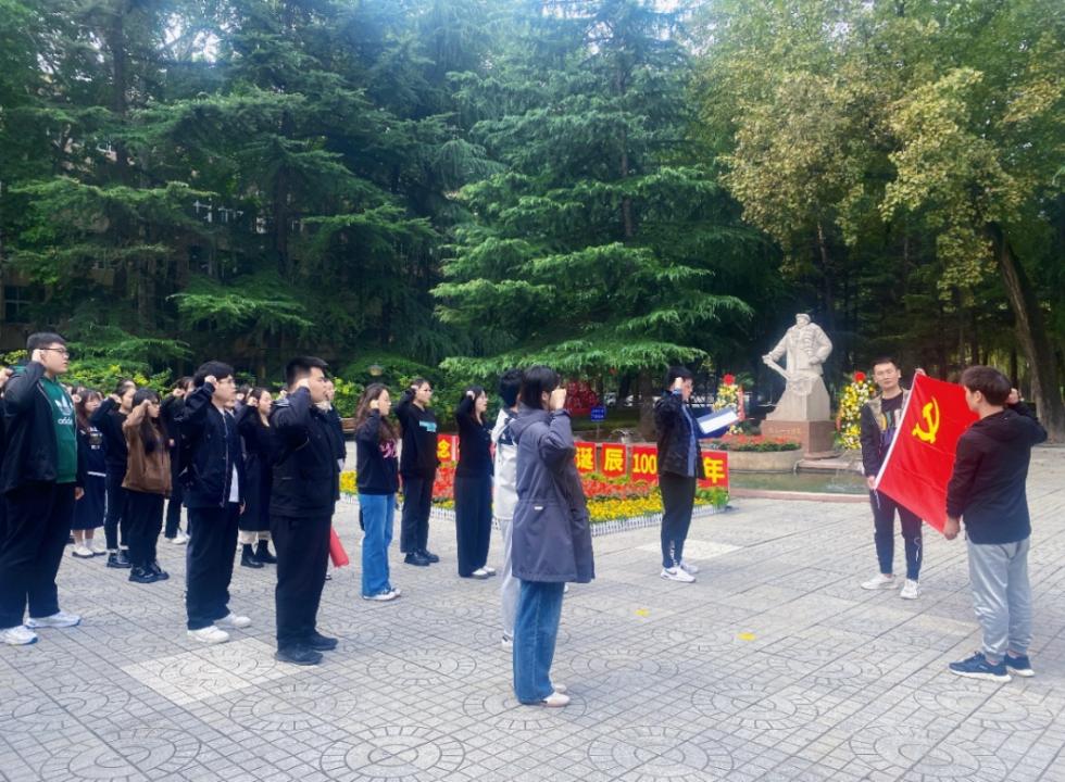 為紀念鐵人王進喜同志誕辰一百周年,緬懷創(chuàng)業(yè)先輩、傳承鐵人精神,10月9日,經(jīng)濟管理學院研2021級、研2022級黨支部在雁塔校區(qū)鐵人廣場舉行緬懷儀式,向鐵人致敬。研究生輔導員陸曉寒、阮添舜,研2021級、研2022級各黨支部全體黨員參加活動?;顒佑裳?022級學碩黨支部書記逯冠博主持。
