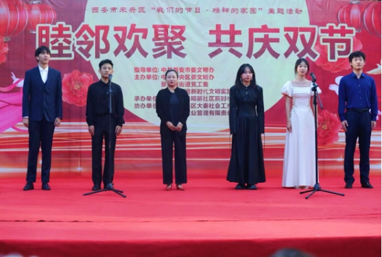 隨著中秋節(jié)和國慶節(jié)的到來,9月26日,受西安市未央?yún)^(qū)張家堡街道辦的邀請,音樂系師生一行8人赴張家堡街道辦明新社區(qū)舉行了一場“睦鄰歡聚共慶雙節(jié)”的高雅藝術進社區(qū)音樂之夜活動。主題活動由音樂系張欣副教授帶領音樂系學子走進社區(qū),展現(xiàn)音樂的魅力,讓社區(qū)居民在音樂的陶冶下放松身心,減輕壓力,提高工作和生活的質(zhì)量。