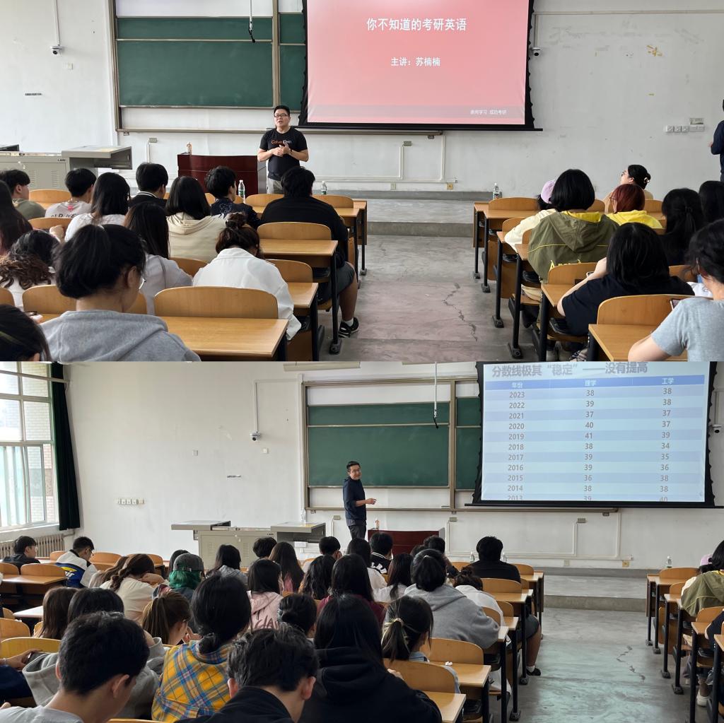 為進(jìn)一步推進(jìn)學(xué)風(fēng)建設(shè),調(diào)動學(xué)生考研升學(xué)積極性,對考研規(guī)劃進(jìn)行針對性指導(dǎo),9月27日下午,人文學(xué)院在博思樓321教室舉辦了2021級學(xué)生考研形勢分析與規(guī)劃指導(dǎo)專題報告會。報告會由考研講師蔡乾鋒與英語名師蘇楠楠主講,學(xué)工辦主任付強(qiáng)、2021級輔導(dǎo)員張馨元及2021級全體擬考研學(xué)生參加本次講座。
