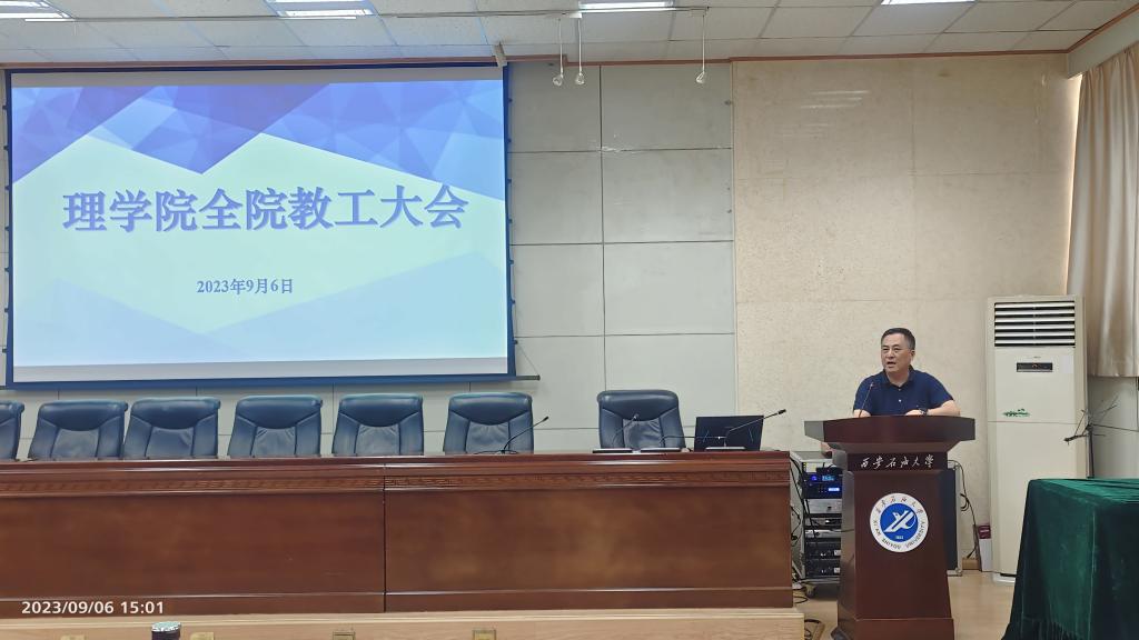 2023年9月6日下午,理學院在雁塔校區(qū)西階第三會議室召開全院教職工大會。學院領導班子和教師120余人參加,黨委書記廖敏主持。
