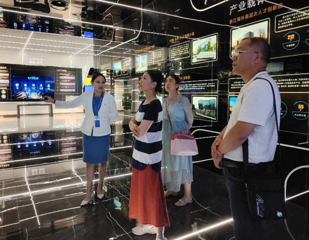 廖敏書記一行在走訪用人企業(yè)的同時,還前往杭州未來科技城人才和金融服務(wù)中心,與中心主任馮敏敏溝通交流了學(xué)校的專業(yè)設(shè)置、人才培養(yǎng)等信息;人才中心王科長陪同廖書記一行參觀了杭州未來科技城海創(chuàng)園城市展館、浙江海外高層次人才創(chuàng)新園,創(chuàng)新園毛芳毅主任介紹了杭州城西科創(chuàng)大走廊高層次人才綜合服務(wù)中心主要業(yè)務(wù)范圍,詳細(xì)介紹了中心“我負(fù)責(zé)陽關(guān)雨露,你負(fù)責(zé)茁壯成長”理念下的人才引進(jìn)、創(chuàng)業(yè)保障等。雙方就進(jìn)一步開展人才引進(jìn)和畢業(yè)生就業(yè)合作進(jìn)行了深入、有益的溝通。