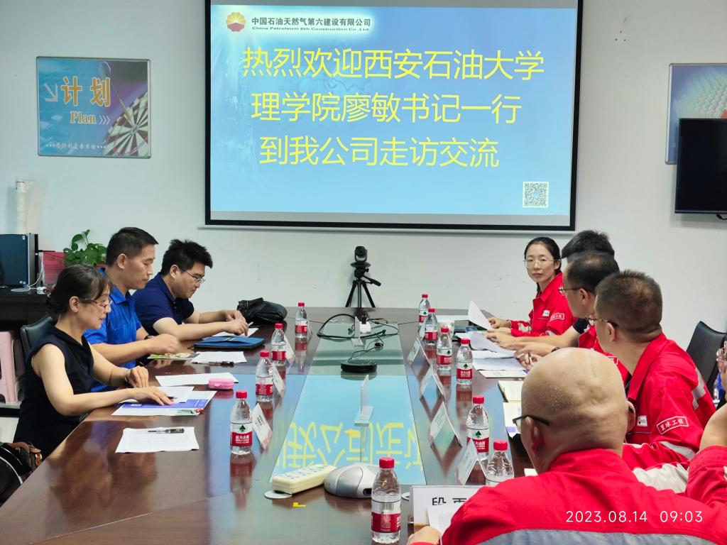 為進(jìn)一步加強(qiáng)校企合作,開拓就業(yè)市場(chǎng),2023年8月14日,理學(xué)院黨委書記廖敏、應(yīng)用物理系副主任丁繼軍、人文學(xué)院畢業(yè)班輔導(dǎo)員李嶠等一行三人前往中國(guó)石油天然氣集團(tuán)公司第六建設(shè)有限公司西北分公司(以下簡(jiǎn)稱西北分公司)走訪交流。雙方就加強(qiáng)校企合作、關(guān)注校友成長(zhǎng)等進(jìn)行了座談交流。