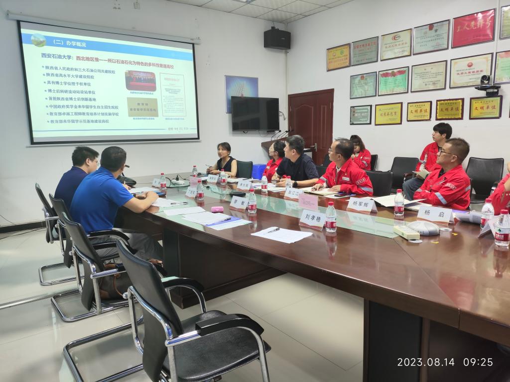 趙經(jīng)理對(duì)廖敏書記一行人的到來表示熱烈地歡迎,并從公司發(fā)展情況、人才培養(yǎng)模式、西安石油大學(xué)歷年畢業(yè)生發(fā)展情況、招聘需求及用工方式等方面進(jìn)行了全方位的介紹。同時(shí),趙經(jīng)理還表示作為西安石油大學(xué)的校友,希望能夠繼續(xù)加強(qiáng)合作交流,為校企進(jìn)一步合作提供全方位的支持。