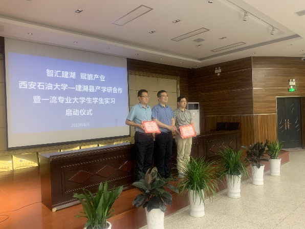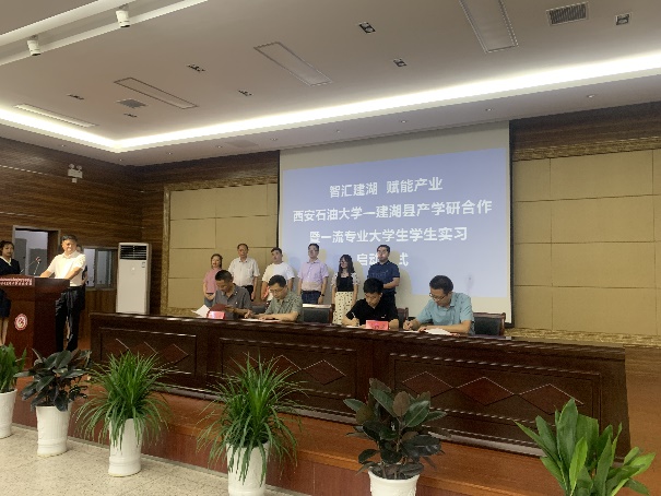 啟動儀式上,與會人員共同觀看了《建湖有戲》宣傳片;吳偉芳和曾令群分別就建湖縣引才政策和科技創(chuàng)新工作進行了推介宣講,同時誠摯邀請西石大畢業(yè)生們到建湖就業(yè)創(chuàng)業(yè);孫盤檜分別為蔡建文和林紅先頒發(fā)了“引才大使”證書;蔡建文和林紅先分別與鹽城中威機械有限公司等10家企業(yè)簽訂了產(chǎn)學研合作協(xié)議并進行了大學生實習基地授牌;企業(yè)代表鹽城中威機械有限公司董事長黃永中和實習生代表裝備2001班張嘉豪同學分別發(fā)言。
