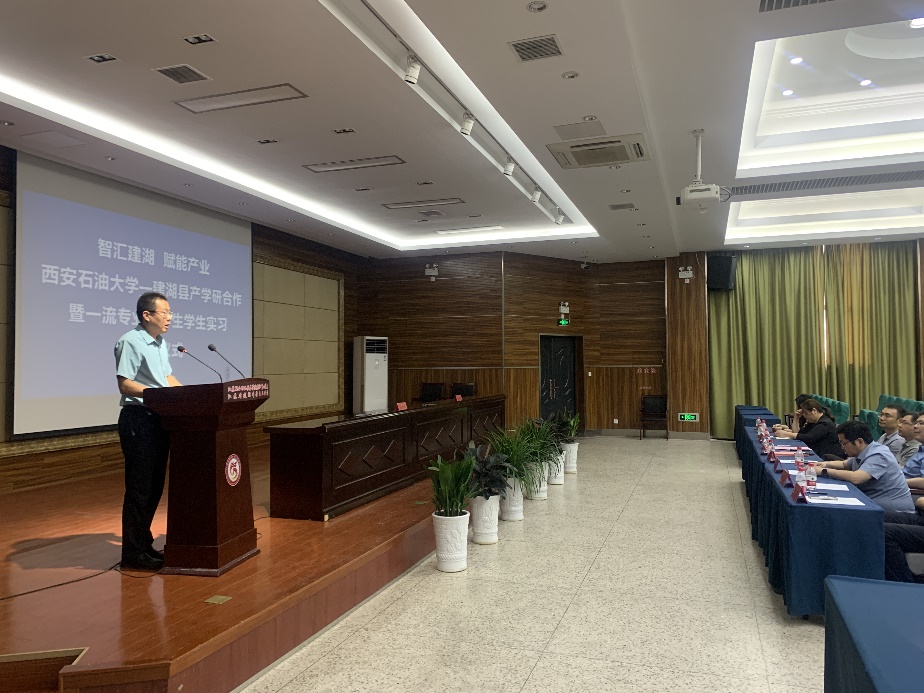 李振在致辭中代表建湖縣委、縣政府對學校實習師生的到來表示熱烈歡迎。他表示,我校和建湖縣有著很深的合作淵源,雙方在科技創(chuàng)新合作、研發(fā)平臺建設(shè)、產(chǎn)業(yè)發(fā)展規(guī)劃以及人文交流等方面進行了長期深層次的交流與合作,尤其是在石油裝備領(lǐng)域發(fā)展過程中一直以來得到了學校的精心指導和大力幫助,為建湖縣相關(guān)產(chǎn)業(yè)轉(zhuǎn)型升級和縣域經(jīng)濟發(fā)展起到了積極的促進作用。他希望,通過以此次活動為契機,進一步加強與學校聯(lián)系,建立更加緊密的友好合作關(guān)系,全力支持、全力服務(wù),加快推進校地政產(chǎn)學研合作,促進校地雙方互利共贏、共同發(fā)展。