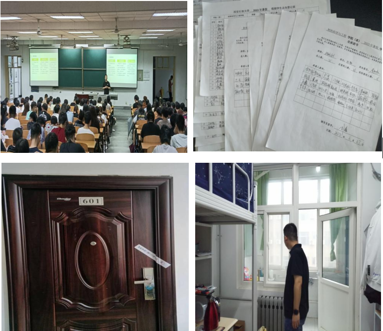 針對留校學(xué)生,輔導(dǎo)員老師詳細(xì)講解了《關(guān)于做好2023年暑假留校學(xué)生教育管理服務(wù)工作的通知》要求,逐一核查《暑假學(xué)生留校申請表》《學(xué)生假期留校安全承諾書》《暑假留校學(xué)生匯總表》《暑假假期學(xué)生去向登記表》,明確其留校離校原因和時間。通過成立臨時班級、明確班級負(fù)責(zé)人、整合學(xué)生宿舍、嚴(yán)格請銷假等方式,對留校學(xué)生進(jìn)行嚴(yán)格管理,同時學(xué)院在天工樓安排了6間考研自習(xí)室,為留??佳袕?fù)習(xí)學(xué)生提供堅實的后勤服務(wù)保障營造安全穩(wěn)定的留校學(xué)習(xí)生活氛圍。針對離校學(xué)生,輔導(dǎo)員老師要求同學(xué)們做到文明離校,確保離校時打掃好寢室衛(wèi)生,鎖好門窗,關(guān)閉寢室電源。離校途中增強(qiáng)安全防范意識,及時與家長溝通行程。此外,還要求同學(xué)們及時關(guān)注返校通知,合理規(guī)劃行程,保證能夠安全、按時返校。