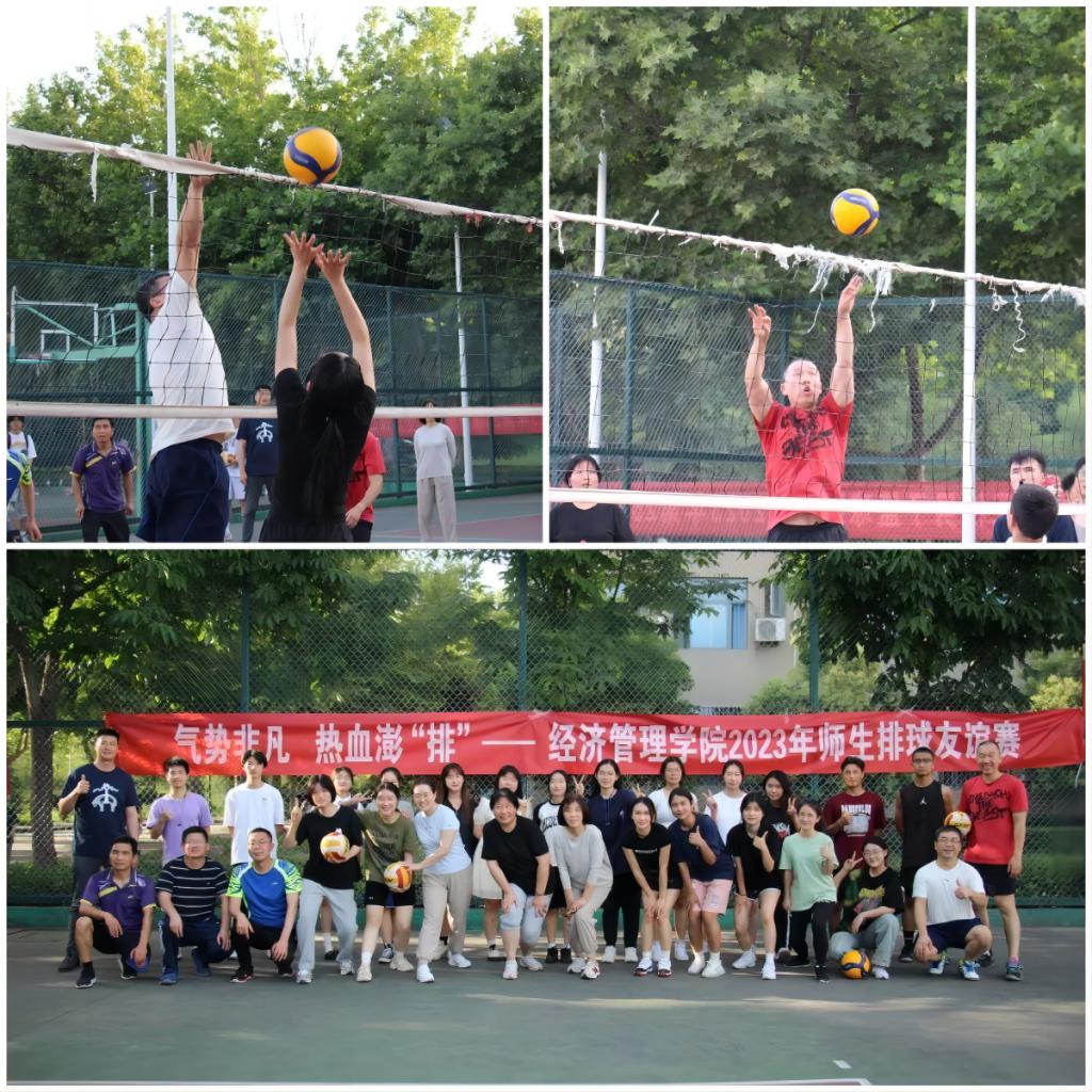 為增強(qiáng)學(xué)院師生之間的溝通交流,促進(jìn)全體師生身心健康,經(jīng)濟(jì)管理學(xué)院于6月8日舉辦了一場精彩的師生排球友誼賽。來自教師代表隊(duì)和學(xué)生代表隊(duì)的選手們在比賽中展現(xiàn)了頑強(qiáng)的體育精神和出色的技巧,給現(xiàn)場觀眾帶來了一場視覺盛宴。比賽現(xiàn)場,隊(duì)員們精神飽滿、拼搏進(jìn)取,場上場下,同舟共濟(jì),彰顯了團(tuán)隊(duì)協(xié)作的精神風(fēng)貌。比賽現(xiàn)場不僅有隊(duì)員們的熱烈歡呼聲,還有學(xué)生們的熱情吶喊和老師們的加油助威聲,現(xiàn)場氣氛熱烈、溫馨。