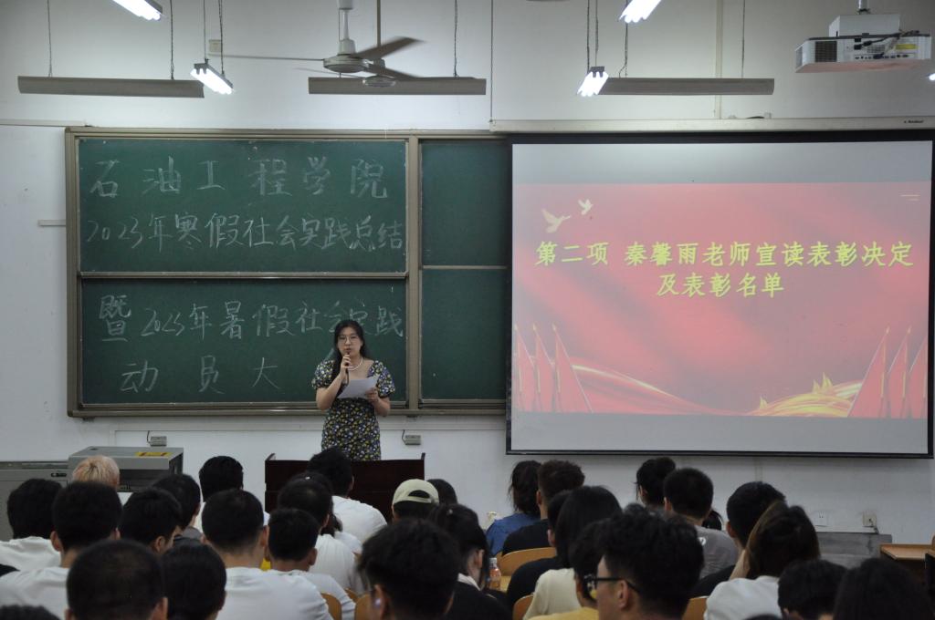 大學生假期社會實踐活動作為高校實踐育人的重要組成部分,豐富和深化大學生思想政治教育,使大學生能夠在理論和實踐相結合的過程中增長才干、健康成長。為扎實推進2023年暑期社會實踐工作,激發(fā)學生參與熱情,石油工程學院于6月16日下午在博思樓舉行2023年寒假社會實踐總結表彰暨2023年暑假社會實踐動員大會,石油工程學院2021級輔導員兼團委、學生會指導老師秦馨雨,2022級輔導員聶康晨,2023年寒假實踐獲獎學生等百余人出席本次大會。