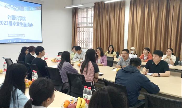 為傾聽畢業(yè)生心聲,強化管理育人、服務育人的針對性與實效性。6月18日上午,外國語學院在鄠邑校區(qū)崇文樓314會議室召開2023屆畢業(yè)生代表座談會。院黨委書記田虹霞、副書記王業(yè)青、副院長陳武、俄語系主任張艷、學生工作辦公室辦主任周宇以及學院2023屆畢業(yè)生代表參加了座談會。會議由院黨委副書記王業(yè)青主持。