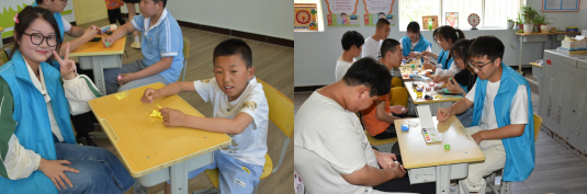 特殊教育學(xué)校羅星老師對志愿者同學(xué)的到來表示歡迎和感謝,并介紹了學(xué)校建校史、辦學(xué)理念、學(xué)生狀況以及獲得榮譽(yù)等情況,也希望和我院志愿服務(wù)團(tuán)隊(duì)形成長期合作關(guān)系交流結(jié)束后,18名志愿者分為4個(gè)組,進(jìn)入四個(gè)班級陪伴孩子們進(jìn)行娛樂,教導(dǎo)活動,針對特殊兒童的情況,志愿者陪伴孩子們做手工,拼圖、繪畫等活動,鍛煉孩子們動手能力。在老師和志愿者的鼓勵(lì)和引導(dǎo)下,孩子們體驗(yàn)游戲帶來的樂趣,教室里不時(shí)傳出歡聲笑語。