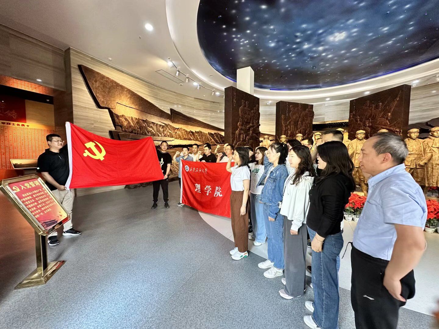 這次研學(xué)之行,是理學(xué)院黨委在主題教育中堅持以習(xí)近平新時代中國特色社會主義思想為指導(dǎo),圍繞學(xué)習(xí)宣傳貫徹黨的二十大精神這條主線開展的一次主題黨日活動。通過這次活動進(jìn)一步引導(dǎo)廣大黨員深刻領(lǐng)悟習(xí)近平新時代中國特色社會主義思想的核心要義、精神實質(zhì)、豐富內(nèi)涵、實踐要求,進(jìn)一步了解中國石油工業(yè)的發(fā)展歷程和石油精神,引導(dǎo)廣大黨員立足崗位,銳意進(jìn)取,奮楫篤行,把埋頭苦干和創(chuàng)新實干結(jié)合起來,發(fā)揮黨員先鋒模范作用,為推進(jìn)學(xué)校、學(xué)院高質(zhì)量發(fā)展作出新的更大的貢獻(xiàn)!