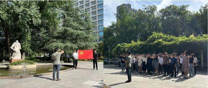 畢業(yè)生文明離校之際,2020級研究生黨支部以主題教育為主線,進行“石油精神”、“鐵人精神”再教育,做好離校前各項工作,組織了次主題黨日活動?;顒娱_始全體黨員同志在李超偉老師的帶領(lǐng)下面向黨旗,在鐵人雕像前重溫入黨誓詞,進行莊嚴宣誓:牢記初心使命,堅定理想信念,弘揚傳承鐵人精神,學石油,愛石油,奉獻石油,走向工作崗位,創(chuàng)造美好未來,實現(xiàn)自己的人生價值。