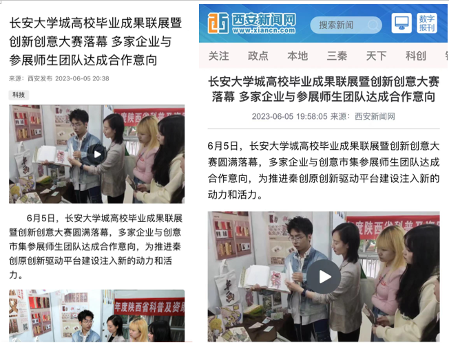 西安發(fā)布、西安新聞網(wǎng)等媒體對本次聯(lián)展活動進行報道,充分展示了當代大學生的創(chuàng)新思維和設計能力,也讓更多人了解了陜西的民間美術,感受中國傳統(tǒng)民間美術與科技融合煥發(fā)的時代魅力。