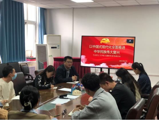 為深入學習貫徹習近平新時代中國特色社會主義思想,深刻學習領會黨的二十大精神,用黨的創(chuàng)新理論統(tǒng)一思想、凝聚共識、提振精神、激發(fā)干勁,激勵廣大青年時刻以歷史主動精神涵養(yǎng)建設中國式現(xiàn)代化的責任擔當,進一步推進主題教育走深走實,6月5日上午,馬克思主義學院院長張海濤教授在雁塔校區(qū)華油能源樓818會議室為研究生第一黨支部全體黨員講授了題為《以中國式現(xiàn)代化全面推進中華民族偉大復興》的專題黨課,黨課由輔導員童玲主持。