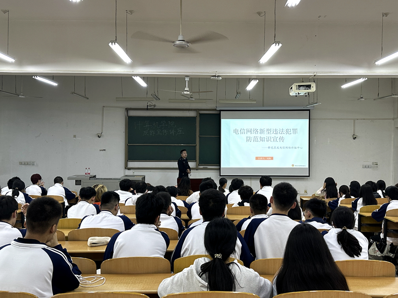 為了提高學生們對于詐騙問題的認識,加強個人信息保護意識,5月29日晚,計算機學院在鄠邑校區(qū)博覽樓121教室舉辦防范電信詐騙專題講座。本次講座由灃京路派出所的鄭昊警官擔任主講嘉賓,學院2022級輔導員李晨、姚謙以及2022級全體學生干部參加。