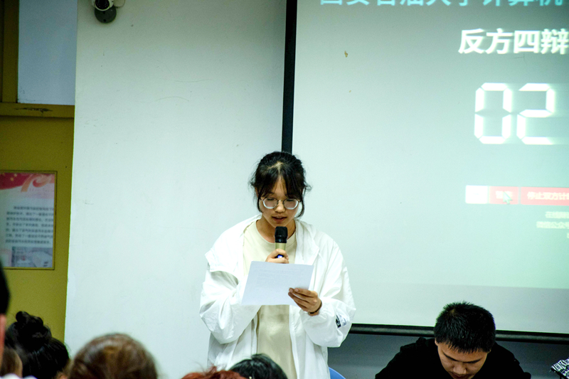 本次辯論賽決賽包括雙方立論、質(zhì)詢、對辯、盤問、自由辯論、總結(jié)陳詞等環(huán)節(jié)。8位決賽選手組成正反雙方,以“過程還是結(jié)果更能體現(xiàn)青年人奮斗的價值”為題展開辯論。正方認為“過程更能體現(xiàn)青年人奮斗的價值”;反方認為“結(jié)果更能體現(xiàn)青年人奮斗的價值”。八位辯手旁征博引,思路清晰,結(jié)合理論與現(xiàn)實展開了深層次的辯論,使現(xiàn)場氣氛迅速升溫。經(jīng)過近一個小時的比賽,最終正方辯手略勝一籌獲得冠軍,正方二辯谷嘉煒、反方三辯陳冠洲憑借突出表現(xiàn)獲得了本次辯論賽“最佳辯手”稱號。