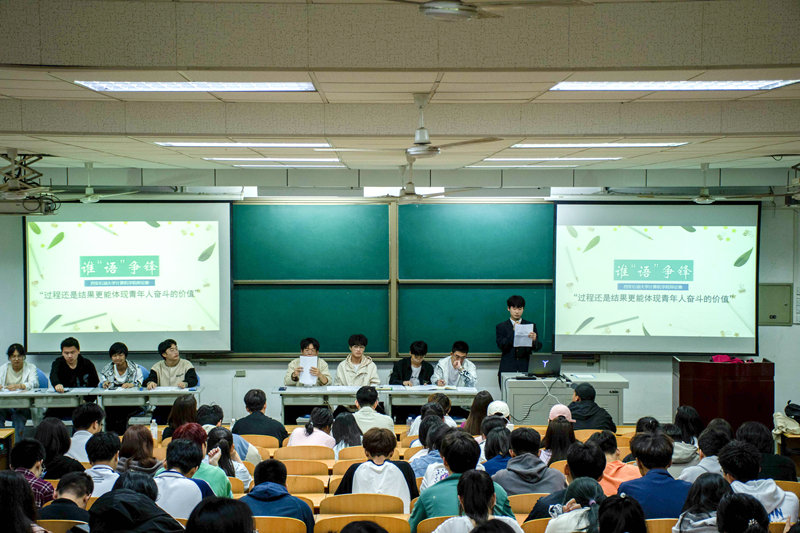 5月15日至28日,計算機學(xué)院舉辦了“誰‘語’爭鋒”辯論賽。經(jīng)班級前期選拔,學(xué)院預(yù)賽,共有8名同學(xué)脫穎而出進入決賽。決賽于5月25日晚在鄠邑校區(qū)博覽樓134教室舉辦。學(xué)院2020級輔導(dǎo)員劉亭普、2022級輔導(dǎo)員姚謙及學(xué)生會主席團代表擔任評委,2022級學(xué)生共計300余人觀賽。