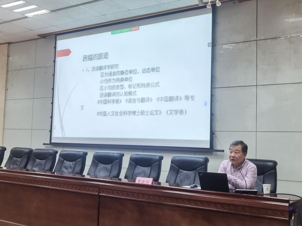 講座中,羅選民教授圍繞其自選集《超越翻譯》的跨學(xué)科研究特色,從“提升學(xué)術(shù),鑄造精品,以學(xué)彰德,以德惠學(xué)”的《英華學(xué)者文庫》出版宗旨,到跨學(xué)科翻譯研究、互文性與翻譯、典籍翻譯的文化自覺、翻譯與中國現(xiàn)代性研究、大翻譯與中國文學(xué)的世界傳播、翻譯的認(rèn)知行為研究等方面詳細(xì)闡釋了自己的治學(xué)觀;結(jié)合自己的教學(xué)科研經(jīng)歷和成果分享了自己“情理交融、龍蟲并雕、中西合璧、推陳出新”的教學(xué)科研十六字箴言。羅教授對翻譯工作充滿熱清,他說:“我在超越翻譯,遨游在語言、翻譯、符號世界的同時,也超越了自己”。