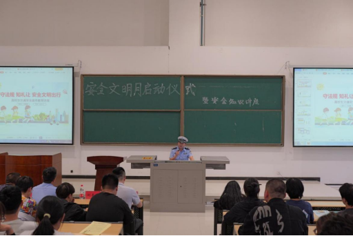 5月24日晚,由校學(xué)生會(huì)主辦的2023年“安全文明月”系列活動(dòng)啟動(dòng)儀式暨安全知識(shí)講座在鄠邑校區(qū)石工地科樓115舉行,西安市公安局鄠邑分局交警大隊(duì)安監(jiān)中隊(duì)中隊(duì)長(zhǎng)劉鵬輝、交通安全宣傳民警劉養(yǎng)峰,我校保衛(wèi)處呂陽(yáng)、校團(tuán)委副書記孫浩哲、校學(xué)生會(huì)骨干及各院系學(xué)生會(huì)、班級(jí)安全委員等240余人在現(xiàn)場(chǎng)參加了啟動(dòng)儀式。儀式由校學(xué)生會(huì)執(zhí)行主席郭麗瑋主持。