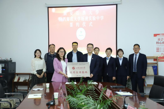 雙方表示,要以共建優(yōu)秀生源基地為契機(jī),加強(qiáng)交流合作、資源共享,努力培養(yǎng)更多具有扎實(shí)理論基礎(chǔ)和創(chuàng)新實(shí)踐能力的優(yōu)質(zhì)人才,共同推動(dòng)高校高中協(xié)同育人邁向新臺(tái)階。會(huì)上,田虹霞書(shū)記代表學(xué)校與陜西師范大學(xué)楊凌實(shí)驗(yàn)中學(xué)簽署了《西安石油大學(xué)優(yōu)秀生源基地建設(shè)協(xié)議》,并授予“優(yōu)秀生源基地”牌匾。