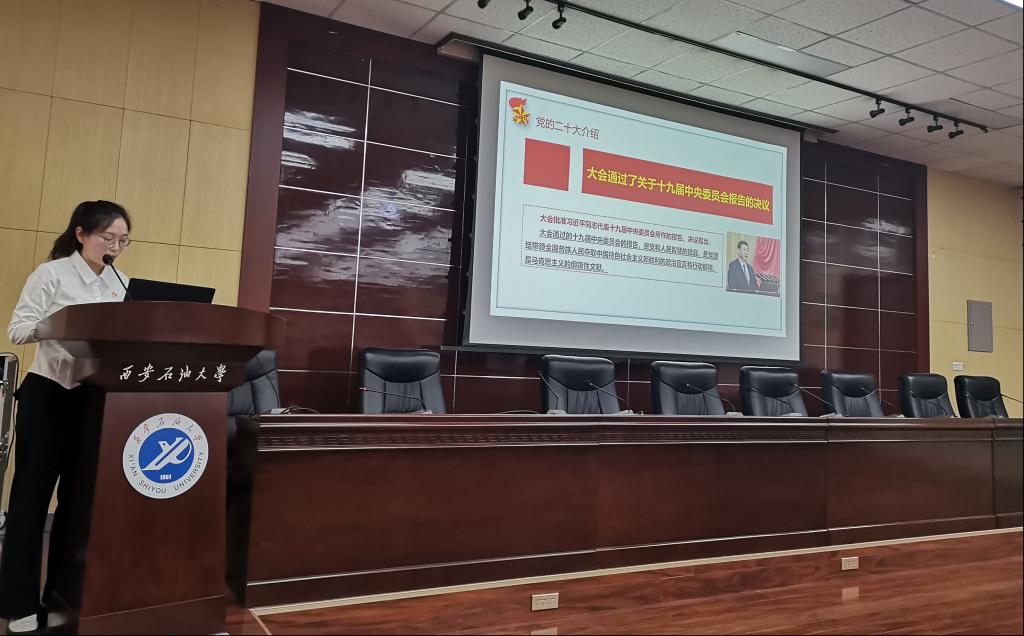 為深入學(xué)習(xí)宣傳貫徹黨的二十大精神,落實(shí)《中共西安石油大學(xué)委員會(huì)關(guān)于認(rèn)真學(xué)習(xí)宣傳貫徹黨的二十大精神的通知》,按照黨委研究生工作部相關(guān)要求,5月19日下午,化學(xué)化工學(xué)院在雁塔校區(qū)會(huì)議中心第五會(huì)議室,開展學(xué)習(xí)黨的二十大精神系列宣講第二講“學(xué)習(xí)二十大,永遠(yuǎn)跟黨走,奮進(jìn)新征程”,黨的二十大精神研究生宣講團(tuán)成員、化學(xué)化工學(xué)院研究生第四黨支部書記尹興雨同志擔(dān)任主講,活動(dòng)由輔導(dǎo)員李超偉老師主持,化學(xué)化工學(xué)院全體研究生黨員、預(yù)備黨員、發(fā)展對(duì)象90余人參加了會(huì)議。