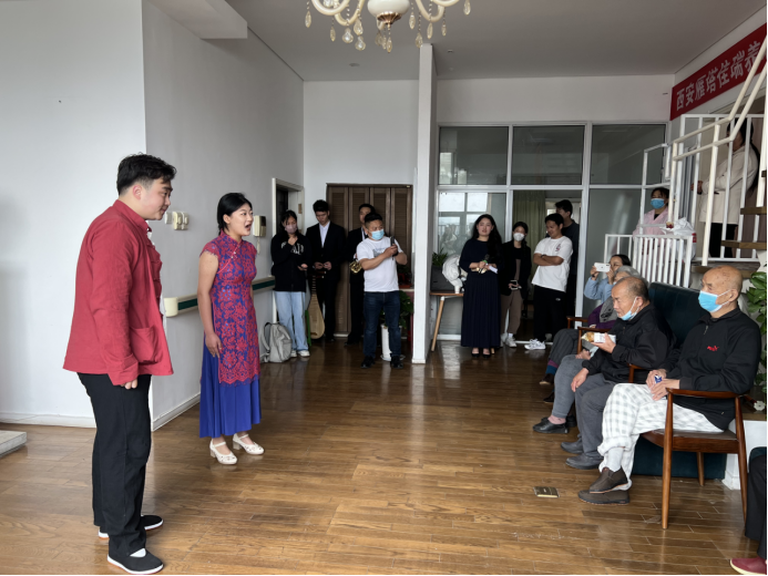 2023年5月11日下午,音樂系黨總支組織黨員師生赴佳瑞養(yǎng)老公寓進行公益演出。我系已連續(xù)四年組織師生進行公益演出和獻愛心活動。本場演出節(jié)目由何云老師策劃編排,劉瑋老師為演出進行了專業(yè)的音樂剪輯制作、張璟老師精心指導學生進行節(jié)目彩排,經過師生聯(lián)手演繹,為佳瑞養(yǎng)老公寓的老人們呈現(xiàn)了一場繽紛多彩的公益演出。音樂系黨總支書記孟開元,教工黨員代表3人、學生黨員30余名參加本場公益活動。