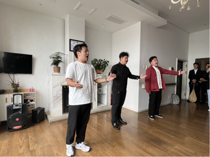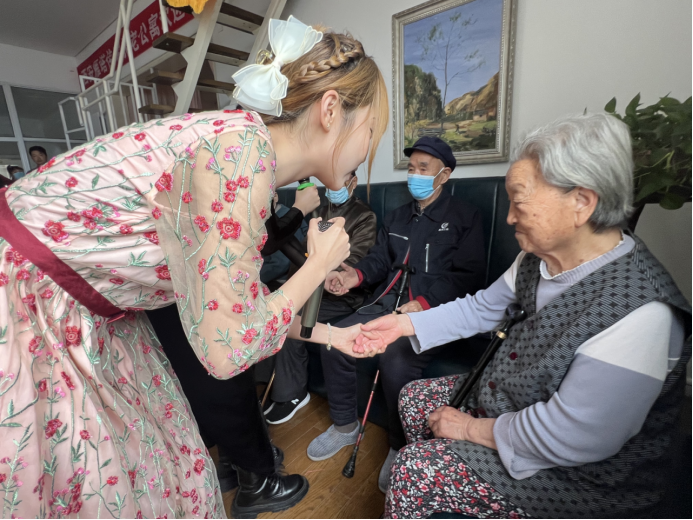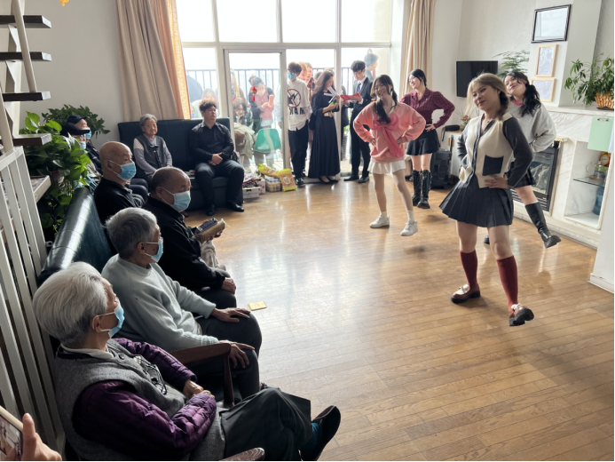 本場演出共10個節(jié)目,首先登場的是快板《同仁堂》,通過快板激揚的拍打,展現(xiàn)了濃郁的地方特色;陜北對唱《想親親》與情深意切,感人肺腑;經典琵琶獨奏《彝族舞曲》旋律悠揚婉轉、薩克斯獨奏《瑤族舞曲》溫馨甜蜜;女生歌曲聯(lián)唱《明天會更好》、流行歌曲串燒《后來》展現(xiàn)出我系學生的專業(yè)水準;現(xiàn)代舞蹈《魅力四射》、《青春活力》用肢體語言表達了小小的愛有大大的力量;二胡獨奏《賽馬》節(jié)奏緊湊張弛有度,體現(xiàn)了我系學生對于傳統(tǒng)文化和傳統(tǒng)曲目的深刻理解。學生們還一同與敬老院的老人們互動交流,現(xiàn)場的老人們激動的留下了淚水。本次活動中我系黨員教師在課程思政教學教改中不斷摸索,明確教學實踐目的,傳遞尊老愛幼的傳統(tǒng)美德、傳承創(chuàng)新傳統(tǒng)文化,探索實踐思政進課堂的深層意義。