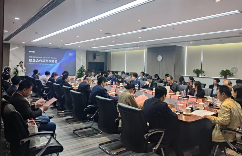 4月26日下午,隆基綠能科技股份有限公司(以下簡稱“隆基綠能”)(電池)Open-day 暨校企合作促進交流會在隆基集團總部大樓舉行,新能源學(xué)院黨委書記宋海洋、學(xué)工辦主任馬武軍受邀參加合作交流活動,同時參加交流的還有陜西科技大學(xué),西安建筑科技大學(xué),西安理工大學(xué)、西安科技大學(xué),蘭州理工大學(xué),蘭州交通大學(xué)等11所高校的相關(guān)學(xué)院負責(zé)人。企校雙方就進一步擴大校企合作,深化開展校企協(xié)同育人、科研攻關(guān)進行交流座談。