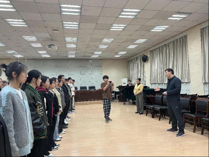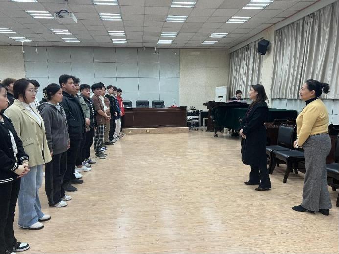 為響應陜西省教育廳關于《中共陜西省委教育工委陜西省教育廳關于舉辦全省大中小學“唱響新時代”合唱展演活動的通知》(陜教工函【2023】22號)的要求,切實培養(yǎng)廣大青少年學生審美和人文素養(yǎng)。音樂系現(xiàn)組成70余人的大學生合唱團,并于4月6日晚在我校雁塔校區(qū)會議中心第三會議室召開了動員大會,我系黨政領導、學生工作辦公室主任出席本次動員會并對在場同學進行動員鼓勵,指導老師楊美萍、白潔以及全體合唱團成員參加本次動員會。