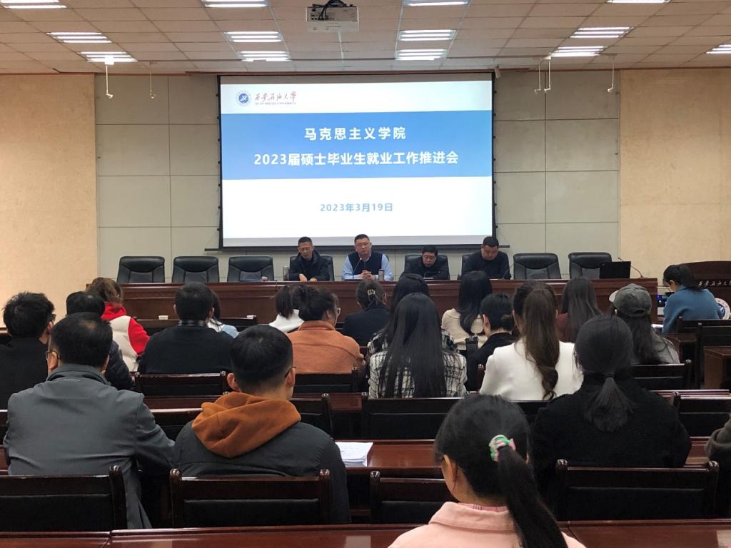 為進一步貫徹落實教育部,陜西省教育工委、教育廳有關(guān)就業(yè)工作的指示精神,切實執(zhí)行好我校關(guān)于做好當前2023屆畢業(yè)生就業(yè)工作的若干意見,2023年3月19日上午,馬克思主義學(xué)院組織召開2023屆碩士畢業(yè)生就業(yè)工作推進會,學(xué)院特邀校學(xué)生工作部副部長、就業(yè)指導(dǎo)中心副主任樊曉旭為畢業(yè)生做就業(yè)形勢分析專題就業(yè)指導(dǎo)講座。馬克思主義學(xué)院全體院領(lǐng)導(dǎo)出席會議,2023屆畢業(yè)生、2024屆研究生參加會議,會議由輔導(dǎo)員童玲主持。