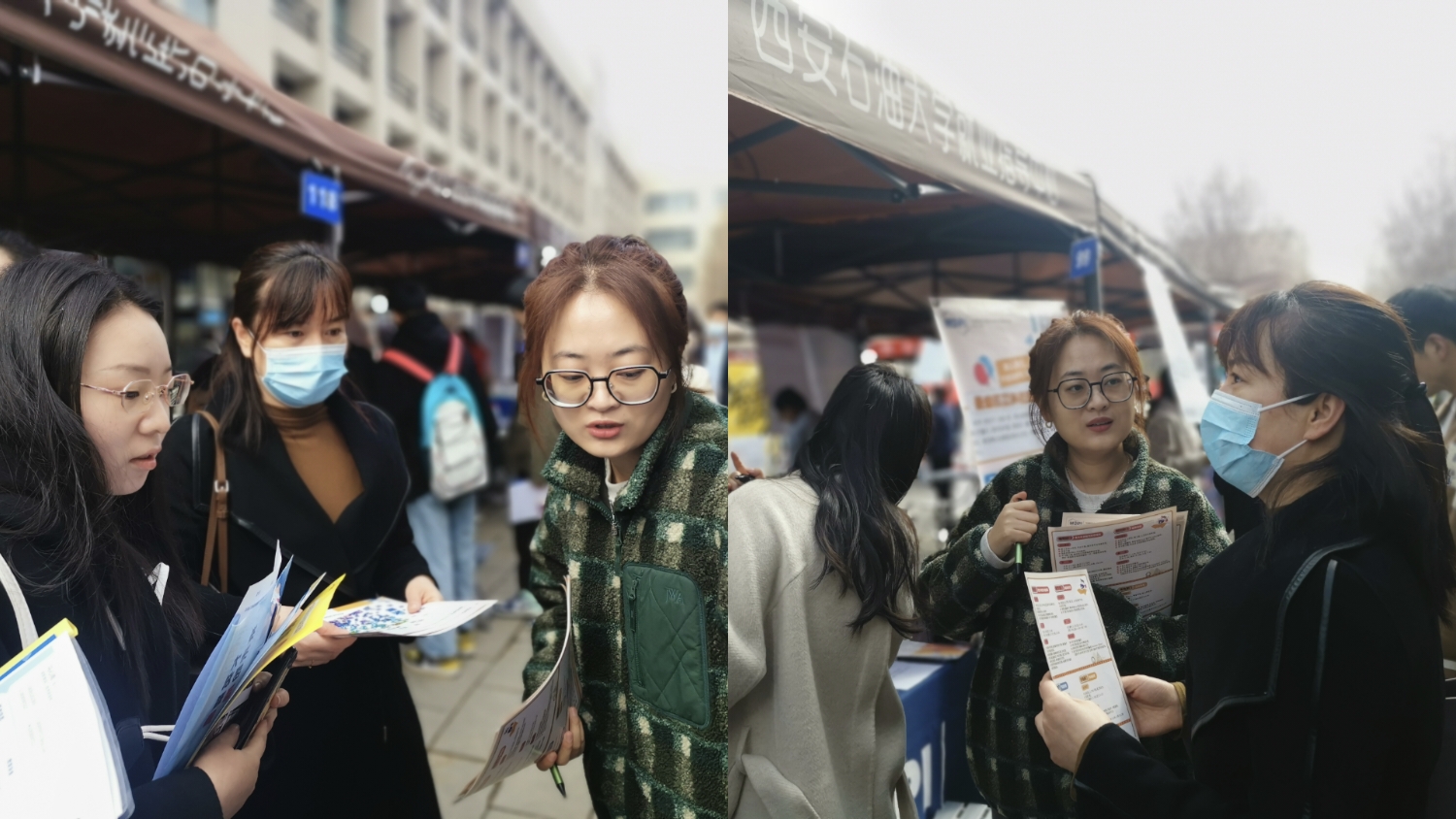 學(xué)院提前四天收集與環(huán)境設(shè)計(jì)、視覺傳達(dá)設(shè)計(jì)、新聞學(xué)、漢語言文學(xué)專業(yè)相關(guān)的企業(yè)信息,分專業(yè)歸類整理,在年級(jí)群中動(dòng)員造勢(shì)。雙選會(huì)當(dāng)天,學(xué)院進(jìn)一步將招聘單位的具體崗位信息與學(xué)生進(jìn)行匹配。方松林副院長帶領(lǐng)研究生畢業(yè)生,與陜西萬唯傳媒有限公司等單位交流推薦;新聞系副主任馬可老師與用人單位熱情交流,進(jìn)一步了解單位需求專業(yè)人才的情況,并推薦部分畢業(yè)生提交簡(jiǎn)歷;學(xué)工辦主任付強(qiáng)與雋美經(jīng)緯電路有限公司等參會(huì)單位交流,拓展十余個(gè)就業(yè)崗位;2019級(jí)本科生輔導(dǎo)員王凱杰現(xiàn)場(chǎng)聯(lián)系陜西投資集團(tuán)有限公司、西安工業(yè)經(jīng)濟(jì)職業(yè)學(xué)校等單位,推薦多名畢業(yè)生到場(chǎng)參加初步面試,初步達(dá)成意向。同時(shí),王凱杰現(xiàn)場(chǎng)向畢業(yè)班學(xué)生解釋目前招聘形勢(shì)和就業(yè)難度,建議學(xué)生擴(kuò)大意向行業(yè)范圍,將目光放在更廣的非專業(yè)相關(guān)崗位上。他建議學(xué)生認(rèn)真評(píng)估自身能力,明確自身能力邊界,適當(dāng)降低期望,樹立“先就業(yè)再擇業(yè)”的就業(yè)觀念。