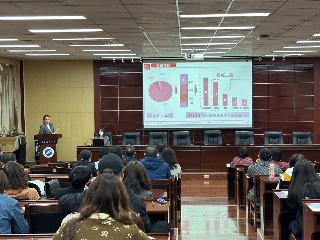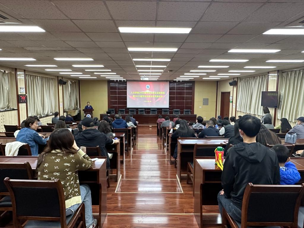 盛丹向全院宣讀了《人文學院關于表彰2022屆畢業(yè)生就業(yè)工作先進個人的決定》,余小勇、李濤、方松林為獲獎教師頒發(fā)榮譽證書。隨后,盛丹就2023屆畢業(yè)生基本情況、就業(yè)進度、考研報名及初試情況匯報了2023屆畢業(yè)生就業(yè)工作進展。她指出,目前2023屆畢業(yè)生就業(yè)形勢依然十分嚴峻,不容樂觀。她向全體教職工匯報了已開展工作、目前面臨的難點和下一步計劃,強調畢業(yè)生就業(yè)工作需要全院教師共同參與,形成合力,要千方百計教育畢業(yè)生樹立正確就業(yè)觀、擇業(yè)觀,想方設法推進學生想就業(yè)、能就業(yè)、快就業(yè)。