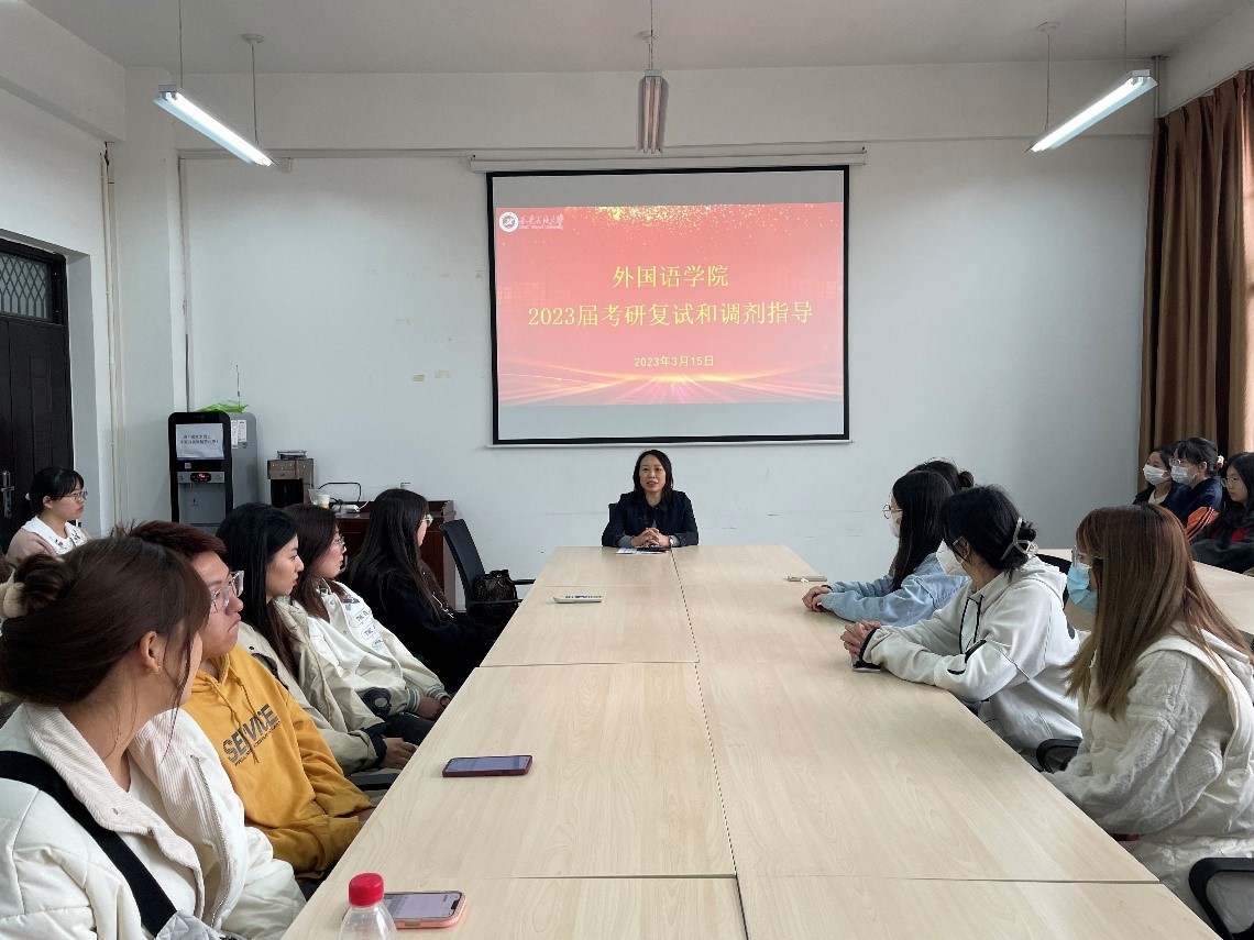 為幫助2023屆考研學生充分了解研究生復試相關(guān)政策,提前做好復試和調(diào)劑相關(guān)準備,外國語學院于3月15日在鄠邑校區(qū)崇文樓314室舉辦2023屆畢業(yè)生考研復試與調(diào)劑指導講座。外國語學院副院長劉輝教授主講,畢業(yè)班輔導員陶李及學院39名達到國家線的考研同學參加。