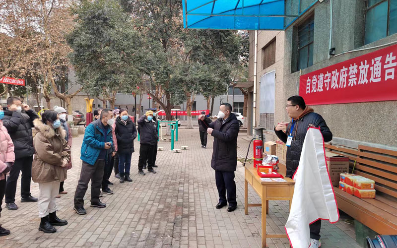 1月17日消防器材和逃生自救設備使用實操培訓,楊西坤處長、王書華副處長、袁坤副處長分別在南院27-30號樓中間空地、北院小花園廣場參加了活動并向參加培訓的樓長、單元長及參加住戶發(fā)放了防煙呼吸器和滅火毯等滅火、自救設備。