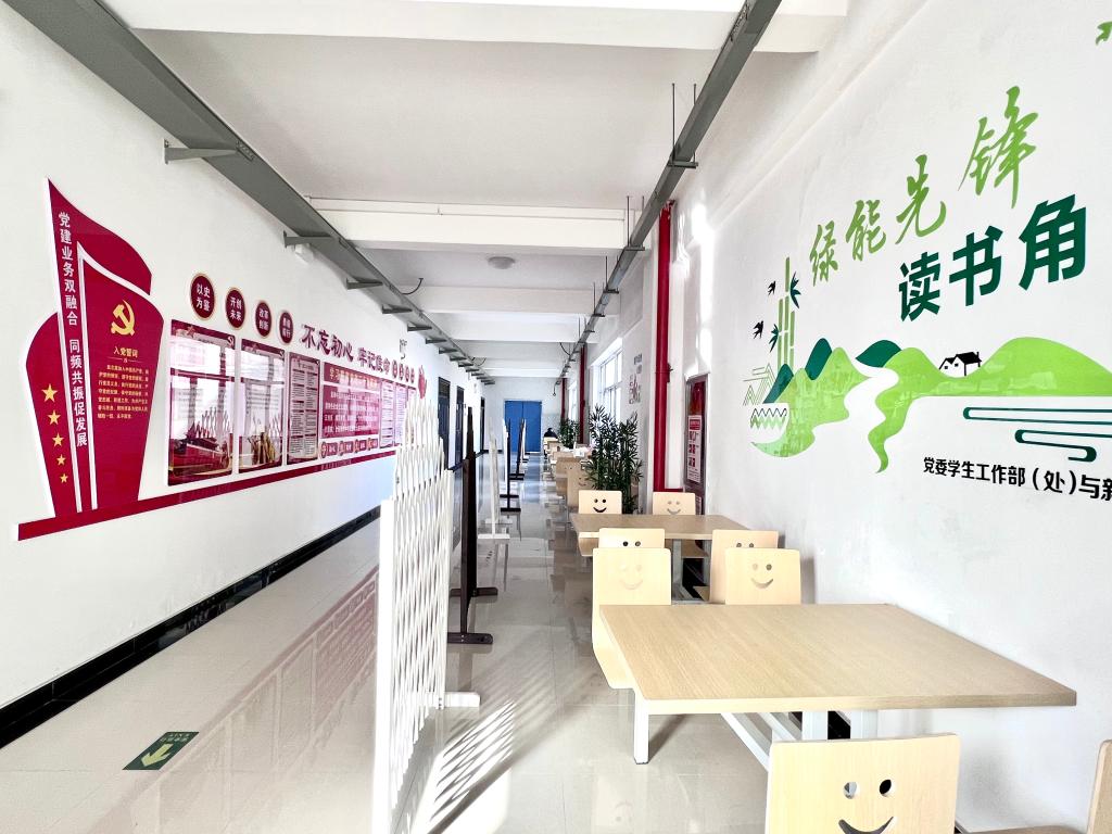 學(xué)院充分利用校園文化走廊和學(xué)生工作辦公室,與校黨委組織部共建了黨建文化長(zhǎng)廊,建成了涵蓋黨的二十大精神、數(shù)讀黨的二十大報(bào)告、黨的二十大報(bào)告摘登、黨的宗旨、黨的紀(jì)律、黨員的義務(wù)、黨員的權(quán)利等為主題的文化墻,切實(shí)將空白墻變?yōu)?/span>學(xué)習(xí)墻。走廊緊跟新時(shí)代步伐,以展板與標(biāo)語為載體,生動(dòng)新穎、圖文并茂地展示黨的二十大報(bào)告內(nèi)容,方便師生在工作和學(xué)習(xí)之余隨時(shí)置身其中,潛移默化地接受黨的二十大精神洗禮,不斷推動(dòng)黨的二十大精神入腦入心。文化走廊充分利用有限的區(qū)域發(fā)揮宣傳作用,不斷以科學(xué)的理論武裝師生,以正確的輿論引導(dǎo)師生,以高尚的精神塑造師生,同時(shí)又與綠能先鋒讀書角交相呼應(yīng),為推動(dòng)黨建與學(xué)風(fēng)建設(shè)深度融合提供了新的平臺(tái)。
